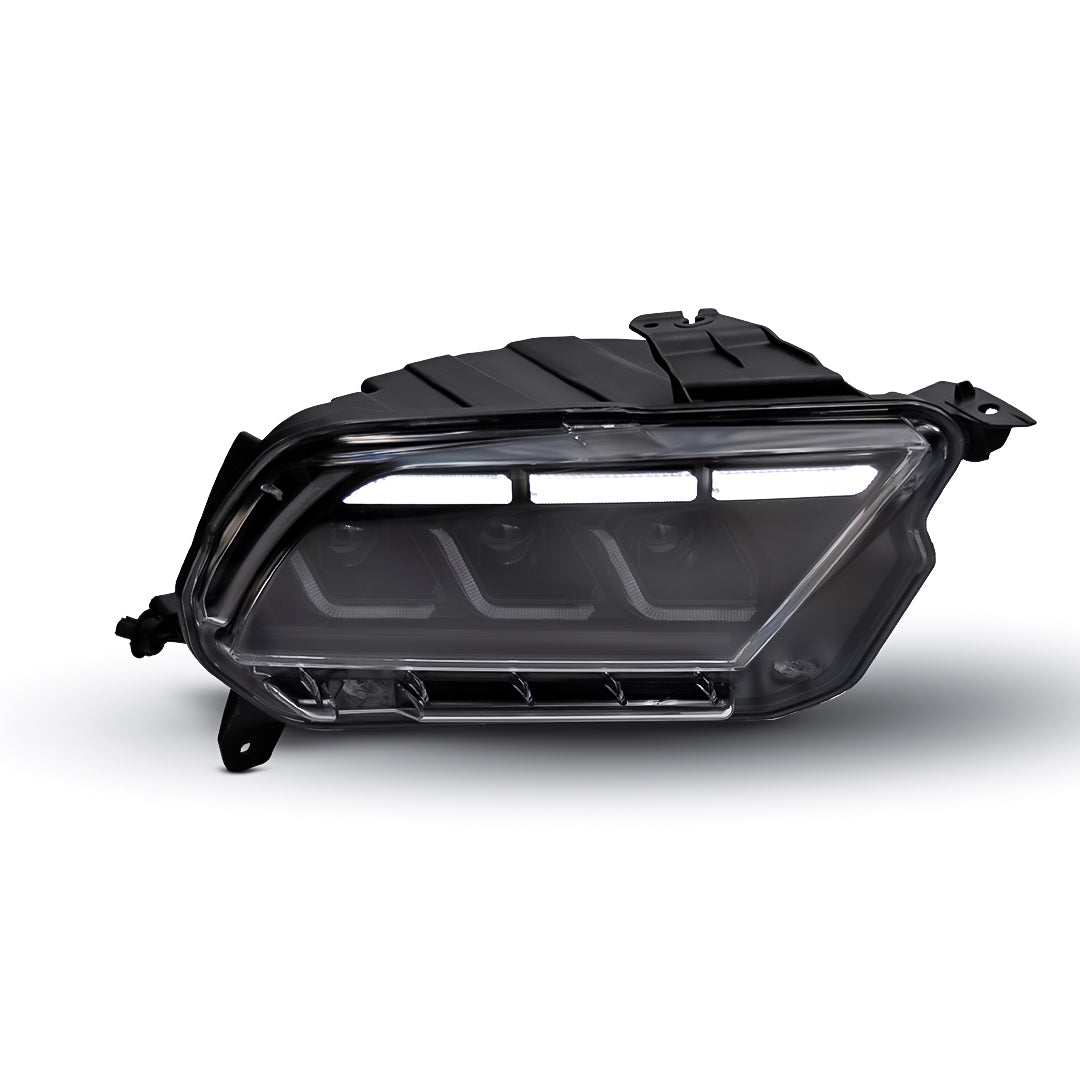 This S650-style LED headlight set is made to fit all 2010–2014 Ford Mustang S197 models. It features ultra-bright white LED projector beams and bold amber sequential turn signals for a clean, modern finish. The lights work with both halogen and HID setups and include dual plugs for easy, plug-and-play installation. A waterproof cap protects the unused connector, while built-in breathing vents stop fog and moisture buildup. Each lens is made from tough polycarbonate, coated to resist yellowing, oxidation, and fogging. Backed by a 1-year limited warranty, these headlights blend head-turning style with road-ready performance.