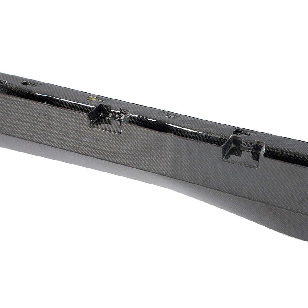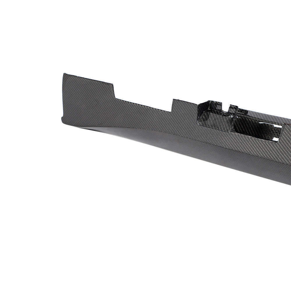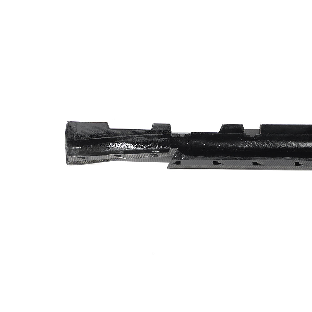 Premium Carbon Fiber Construction. Precision-crafted from lightweight, high-strength carbon fiber, this rocker panel and side skirt combination provides enhanced durability and road resilience. The UV-protected, high-gloss finish maintains a rich, polished appearance, resisting fading for a long-lasting, showroom-quality look. This carbon fiber design reduces vehicle weight and flex to support high-performance handling and aerodynamics.