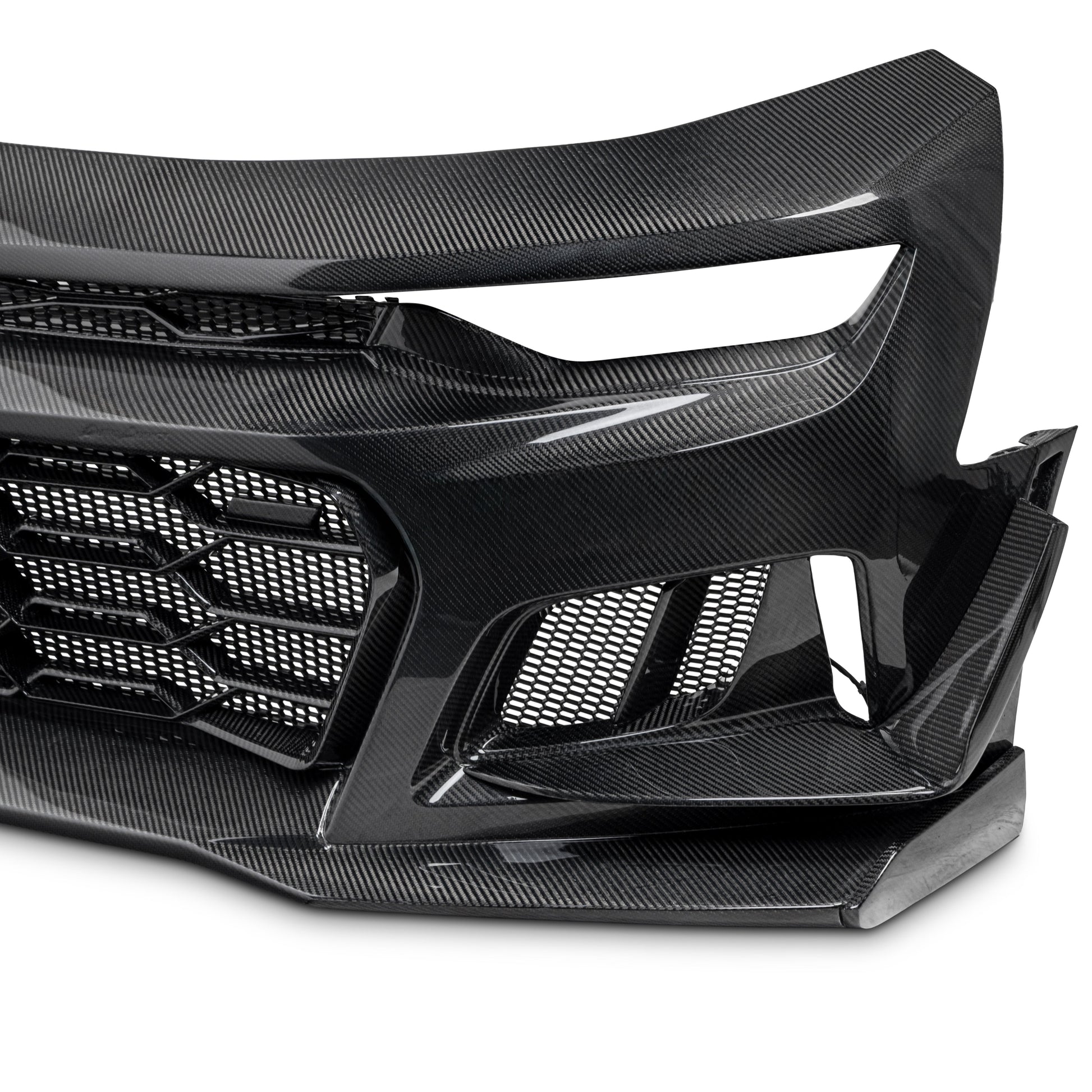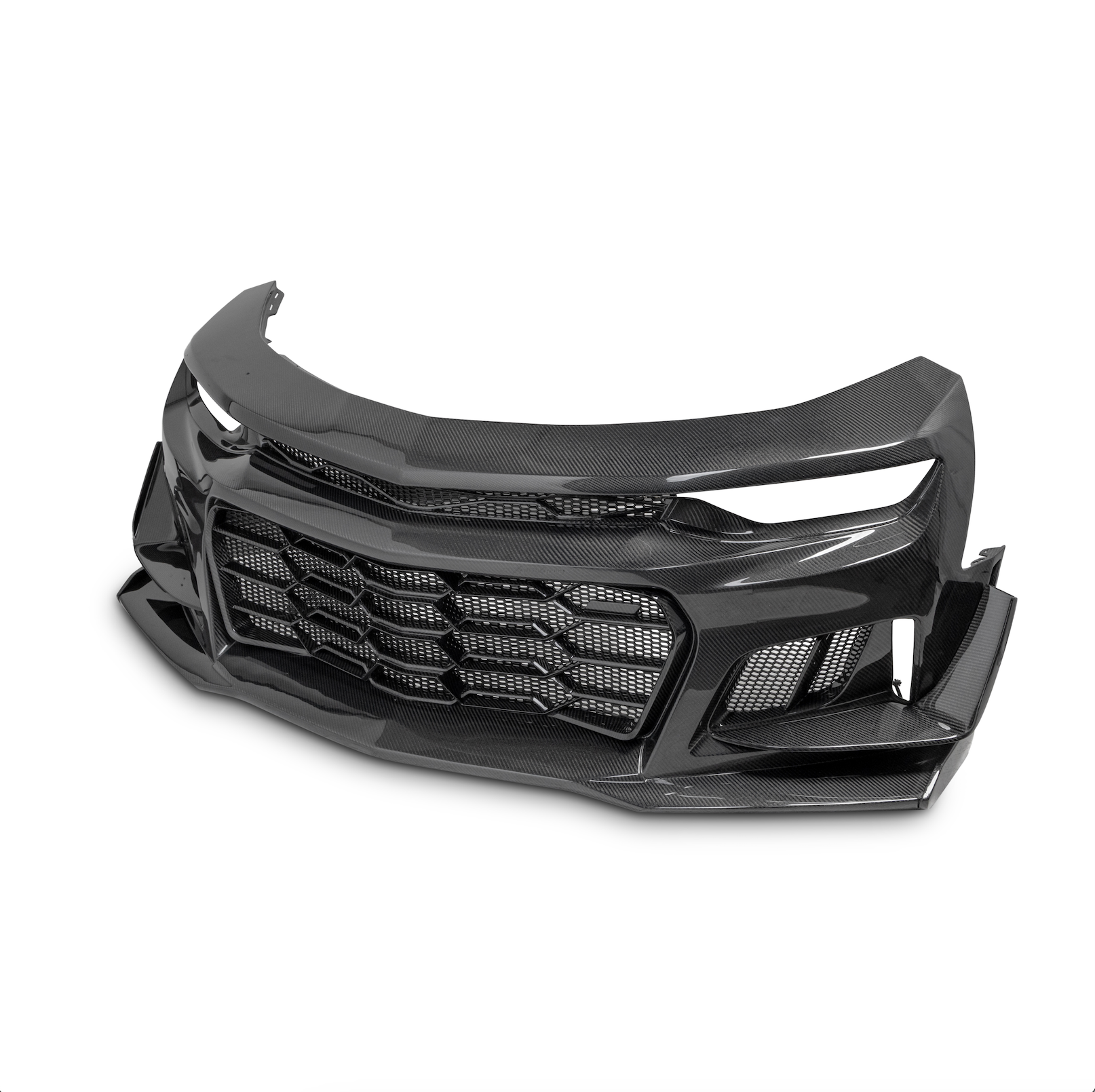 Aggressive Styling. Give your 2019-2025 Chevy Camaro SS RS LT an unrivaled track-inspired upgrade with the 1PC ZL1 1LE Black Panther Carbon Fiber Track Package Front Bumper Conversion in Full Gloss. This unique design transforms your Camaro’s front end with a bold, race-ready appearance, enhancing both style and performance.