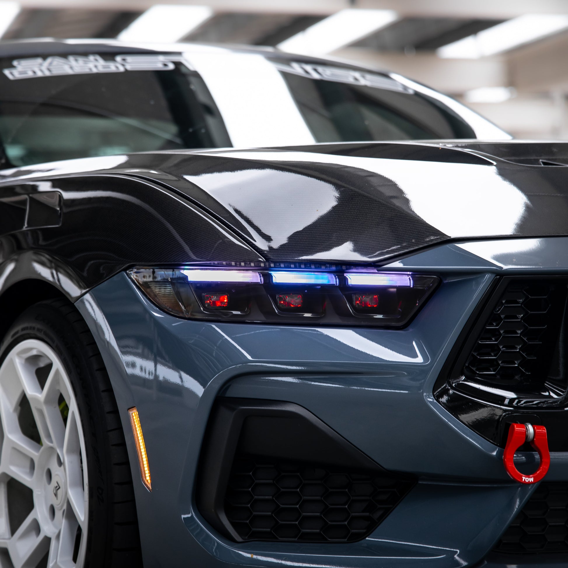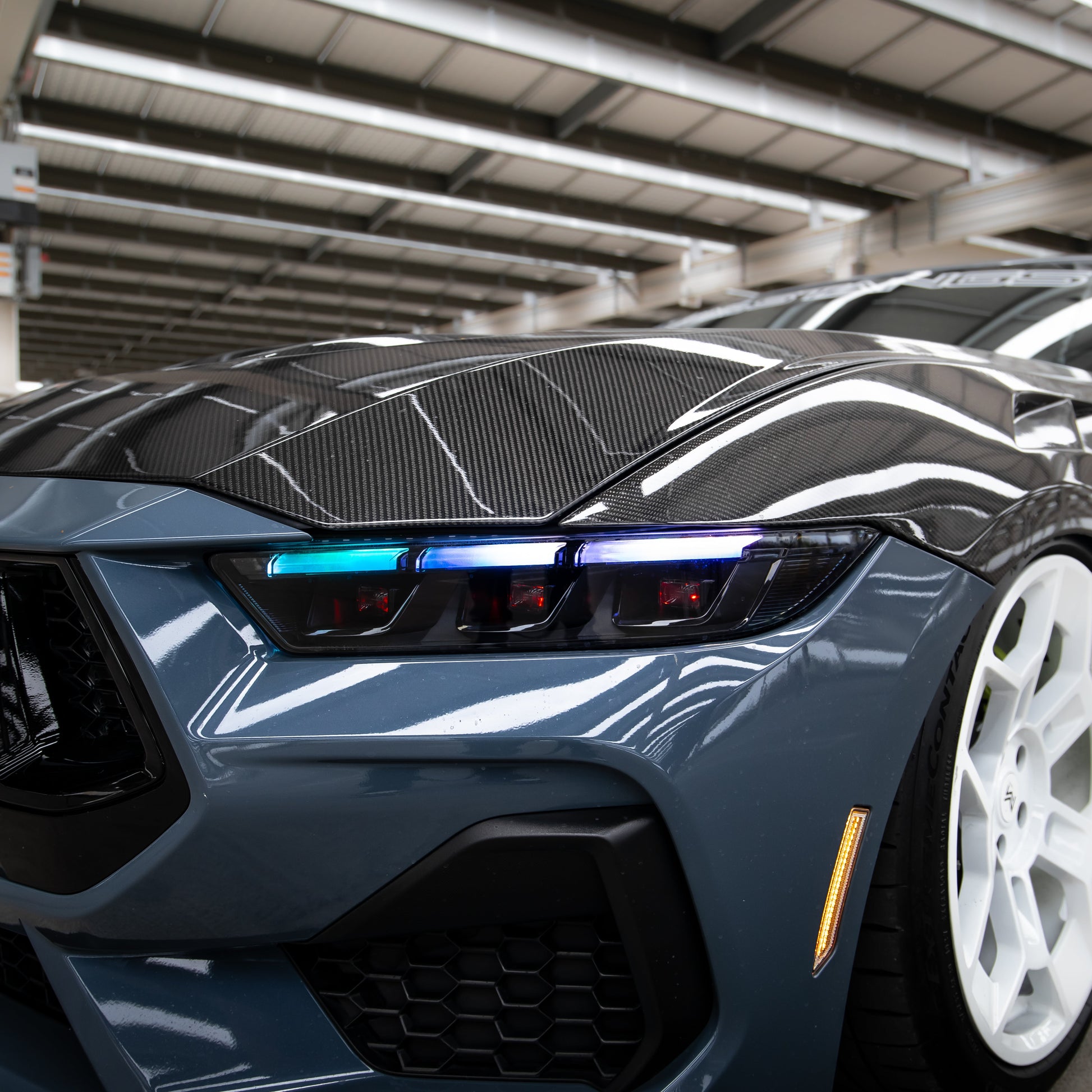 Upgrade your 2024+ Ford Mustang S650 with Auto Addict USA's RGB Headlights featuring a sleek gloss black housing. Designed for Mustang enthusiasts seeking both style and functionality, these headlights offer vibrant RGB lighting options and a modern aesthetic.