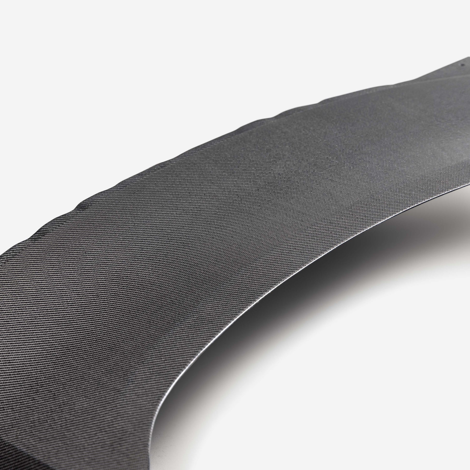 The carbon fiber "skeleton" bonded to the underside enhances durability while achieving significant weight savings—just 11 lbs. compared to the stock decklid's 21 lbs. It mounts seamlessly with OE hardware, hinges, and latch assembly for a factory-like fit. Dimples are present for optional wiring harness and panel drilling to accommodate customization.