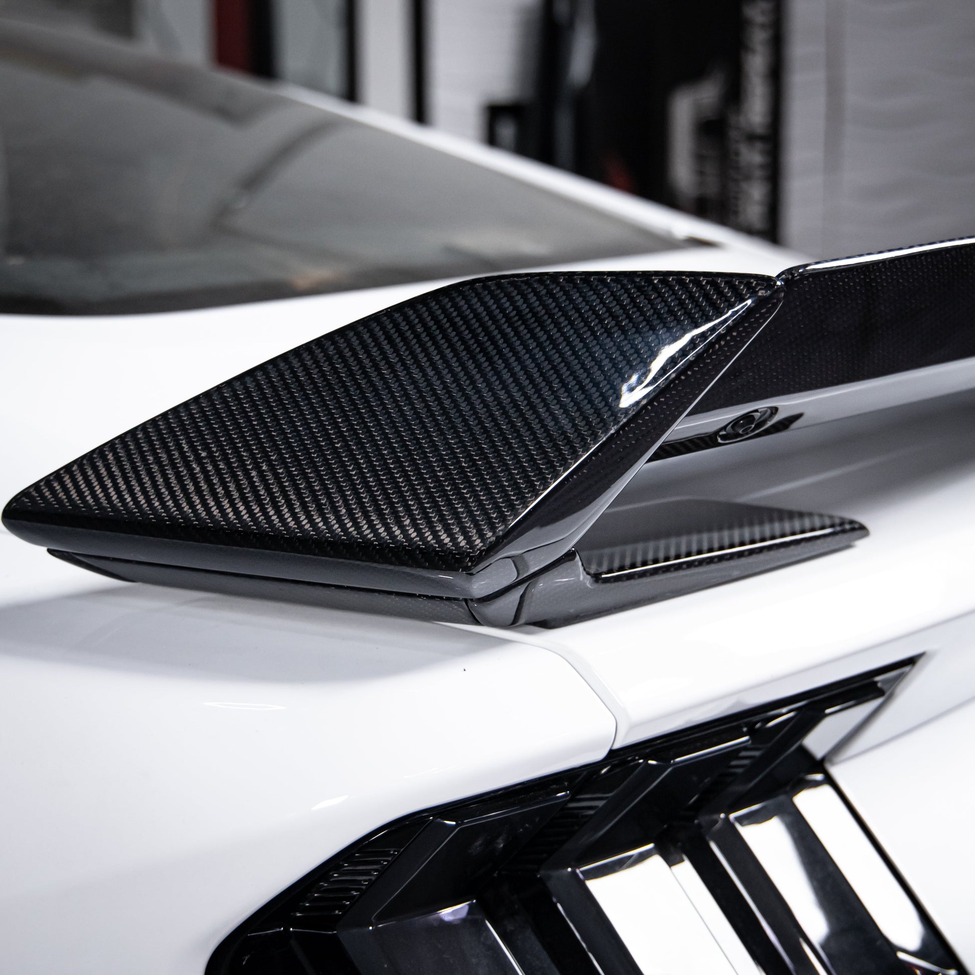 Enhance the aggressive styling and aerodynamic performance of your 2024+ Ford Mustang Dark Horse with this precision-crafted 2-piece rear spoiler from Auto Addict USA. Manufactured using high-grade carbon fiber and finished in a high-gloss clear coat, this spoiler delivers a race-inspired look while maintaining OEM-level fit and finish.
